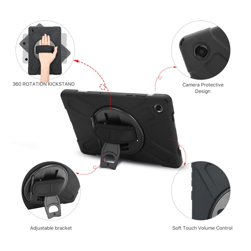 MyBat Rotatable Stand Protector Case (with Wristband) for Samsung Galaxy Tab A11+ 5G - Black / Black